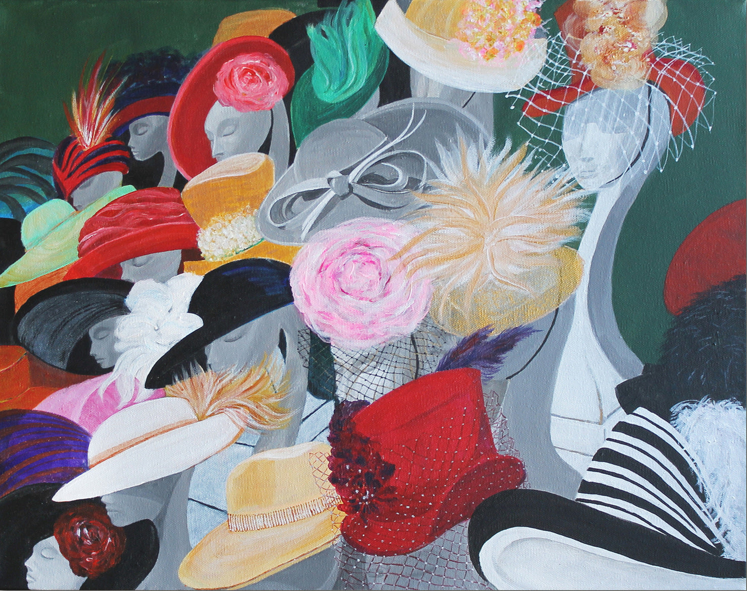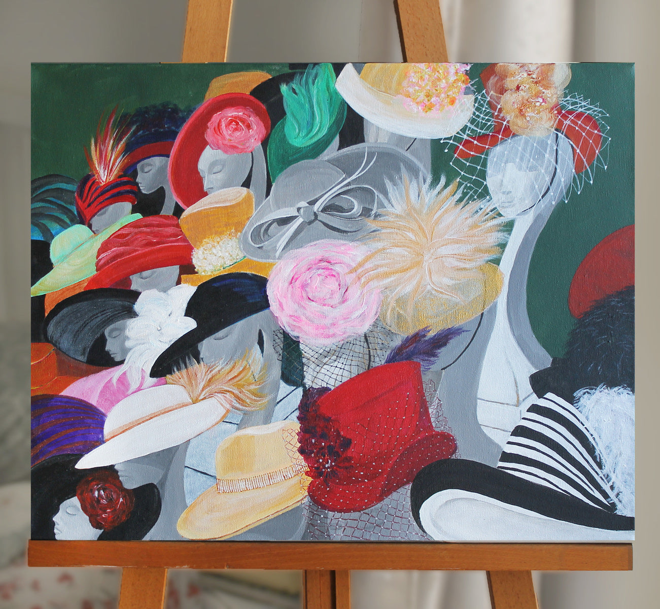 People visit it in swathes for Its rich history and iconic reputation. This tempted me to create a painting that captures the essence of London’s fashion and identity. Each hat represents a unique and individual expression of style and identity. I have attempted to bring together this diversity in one composition, to celebrate individuality, creativity, and multiculturalism of the city