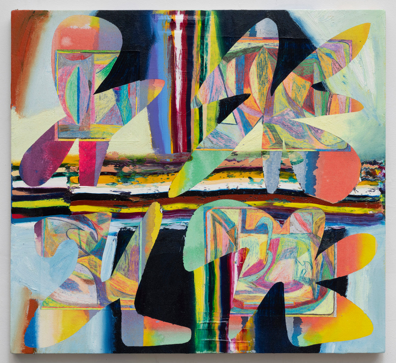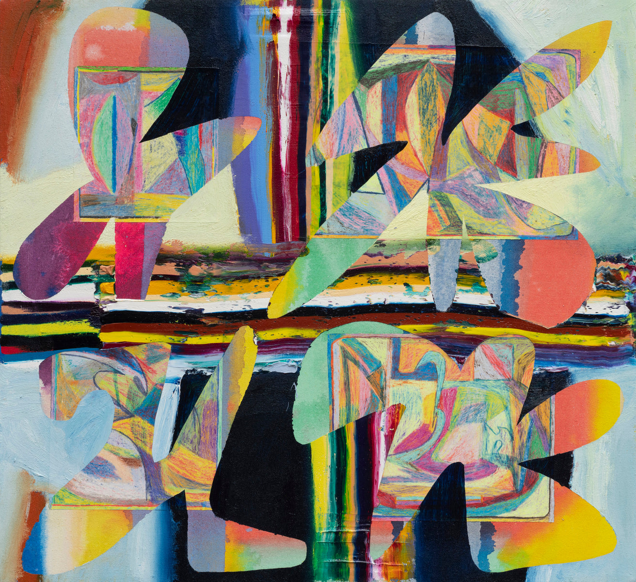 Drawing on outsider art sensibilities, and inspired by living in a city in the digital age, Zack describes his work as a search for balance within the 2D picture plane, fusing craft-oriented patterns, shapes, and motifs- to create abstract narratives for the viewer to mine visually.