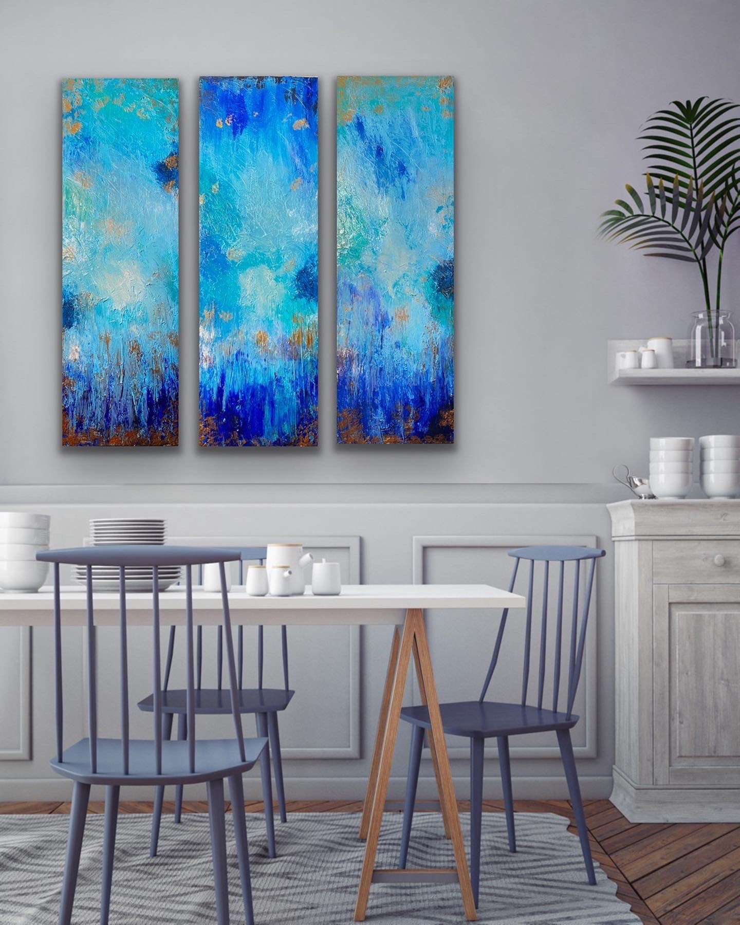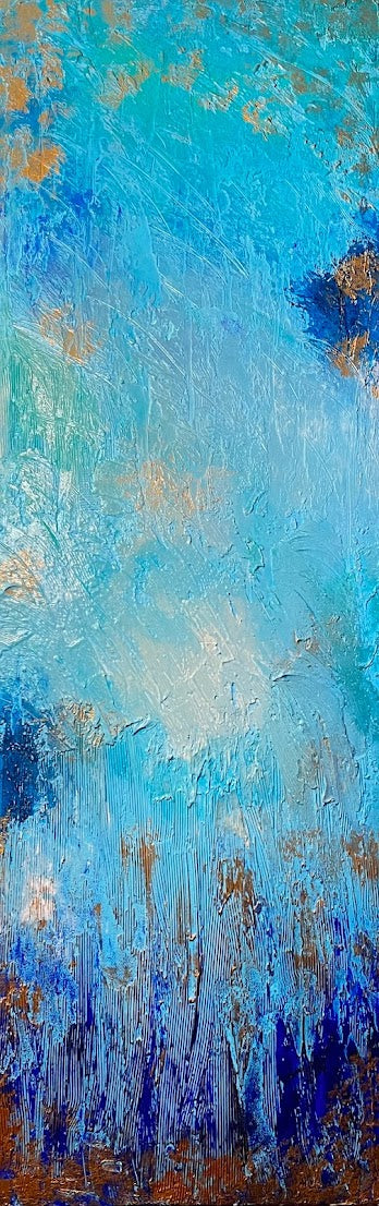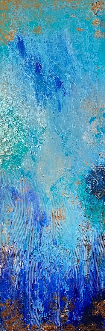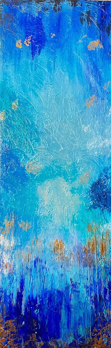 I’ve always admired art but never been an artist. In early 2019, when I had an urge to paint a lotus, I went to Bereskin gallery in Bettendorf, Iowa, even though it was closing time, Pat (owner) patiently walked me through various mediums, styles and sent me home with a brush, few colors, tape, and canvas book. She asked me to follow my calling and just paint. At that time, I was dealing with a tremendous loss in my life and felt completely lost. Painting gave me space to process my emotions, allowed me to connect with myself and helped me overcome fear. When I am working on a painting, it’s cathartic, my emotions flow through the colors I choose and unspoken feelings come to a form. Painting allows me to let go and let be. I love bold, bright colors and gold. My inspirations come from my walks, sunsets and sunrises. My love for silk sarees comes through the color patterns I chose. Abstract gives me freedom to explore, stretches my imagination and allows me to express layer after layer. I hope when you view my paintings, it takes you where you want to go and how you want to feel. I enjoy exploring various textures and patterns. Textures take time to dry so I typically have a few paintings started at a time, I continue to work on it on and off adding little details, staring at it from a distance and closer. My favorite part is adding finishing touches, varnishing, painting the sides, adding a title and signing. I am thankful to be part of the selfless artist community, who are very open to share and appreciate each other's work.