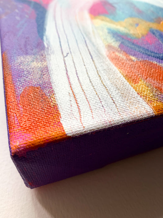 I see dreamy abstract paintings as a place to get truly lost in; to be fully emerged in a sea of radiant colours and flowing patterns and yummy textures. My aesthetic is often nonrepresentational, which allows for the viewer to feel exactly how they want to feel when connecting with the piece. I gain my inspiration from various places; from colour palettes to pebbles, from beautiful forms and shapes, about my feelings, womanhood and spiritual connections. The art works I make are created to bring bursts of energy and to communicate in a way that is the opposite of linear and straightforward. I am a colour obsessive, environmentally conscience, travel-bugged, snack consumer who celebrates all of lives joys.