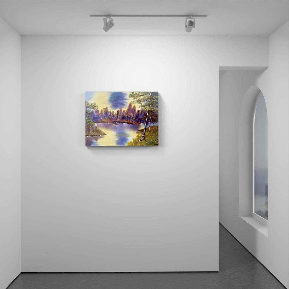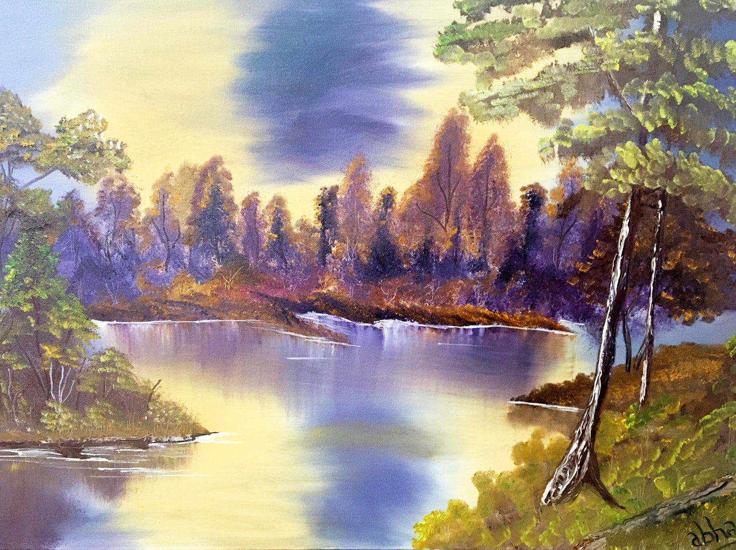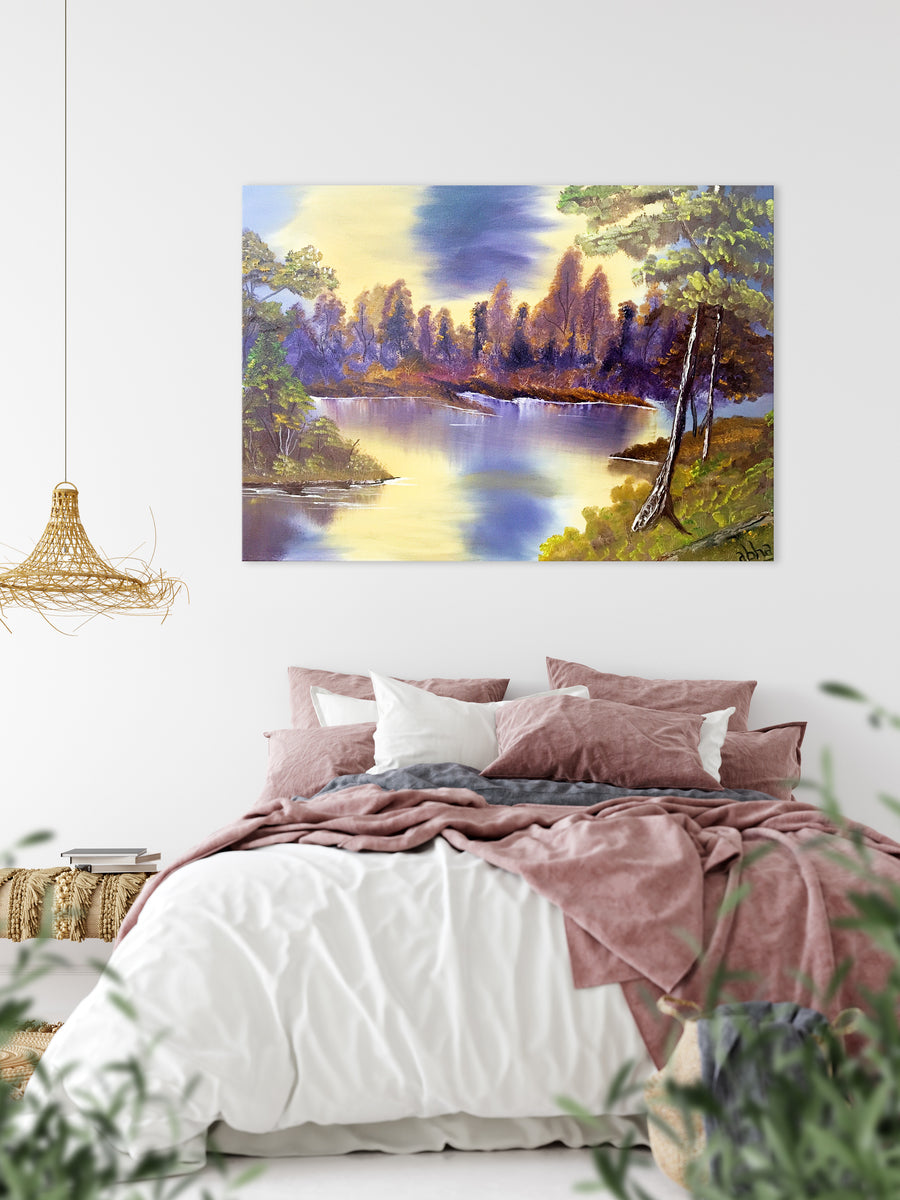 Oil painting on stretched canvas. Size- 3 feet x 2feet. Reflection of trees on a pleasant day