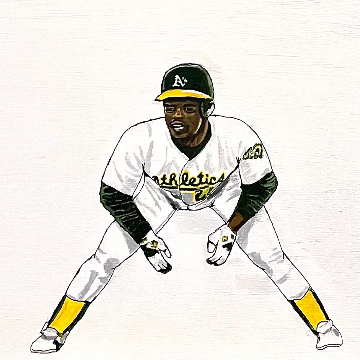 Rickey Henderson taking a lead off of second base.