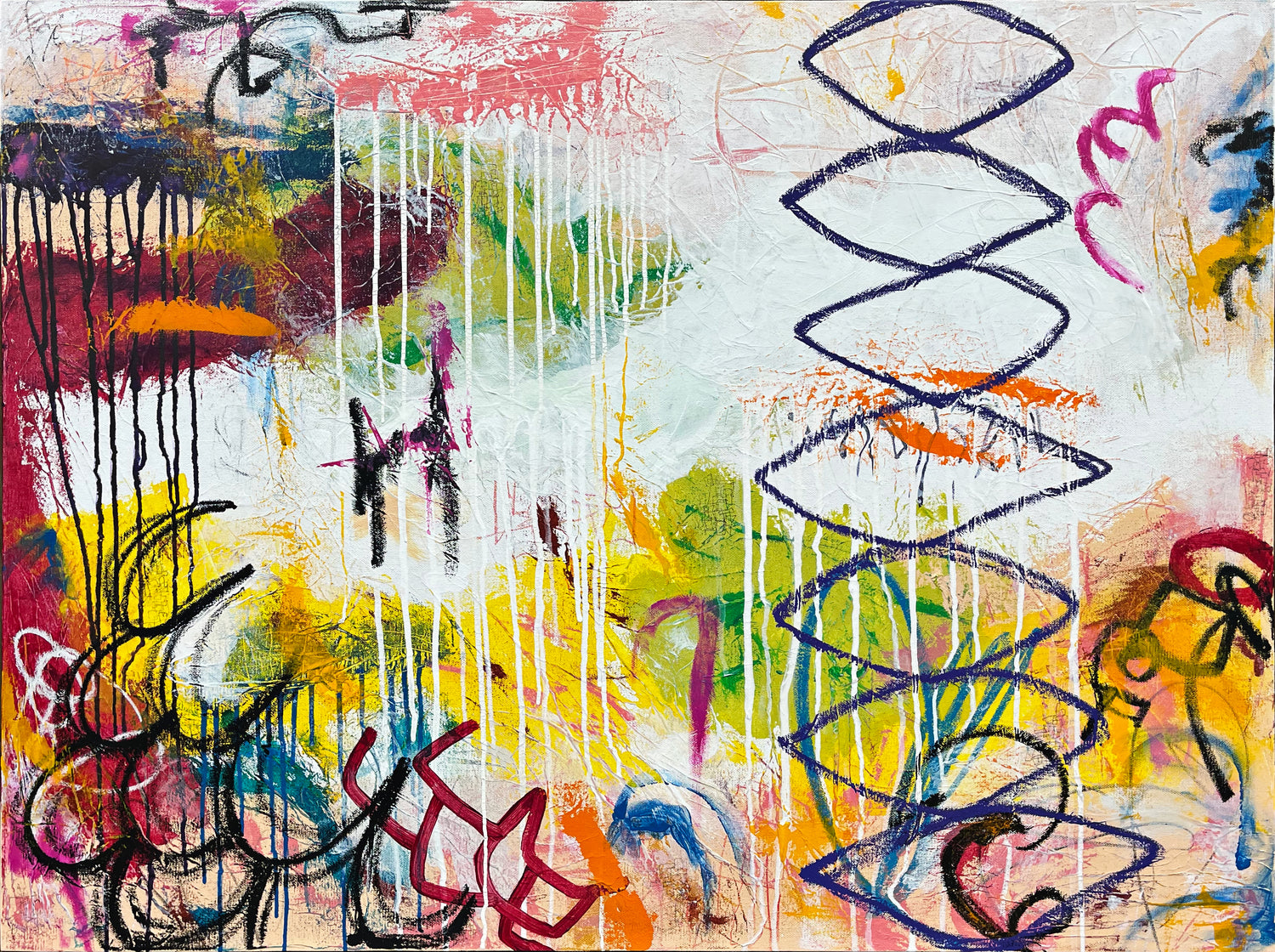 Brazenly visual, Kurt Erickson’s work draws the viewer in through his fresh, vibrant canvases. Growing intuitively out of passing thoughts, emotions and life experiences Erickson’s artworks grasp aspects of graffiti art, punk rock and urban grit. His approach to painting integrates a radical embrace of the subconscious mind. Using effortless gestural marks, he allows fluid brushstrokes and the intersection between the intentional and the subliminal to guide his process. Consciously integrating bright, dynamic colors, his works elicit the sensation of free-spirited spontaneity. His paintings encourage one to pause and let the mind wonder. He seeks to make visual art that invites the viewer to consider a new perspective, a more thoughtful way of looking at life.