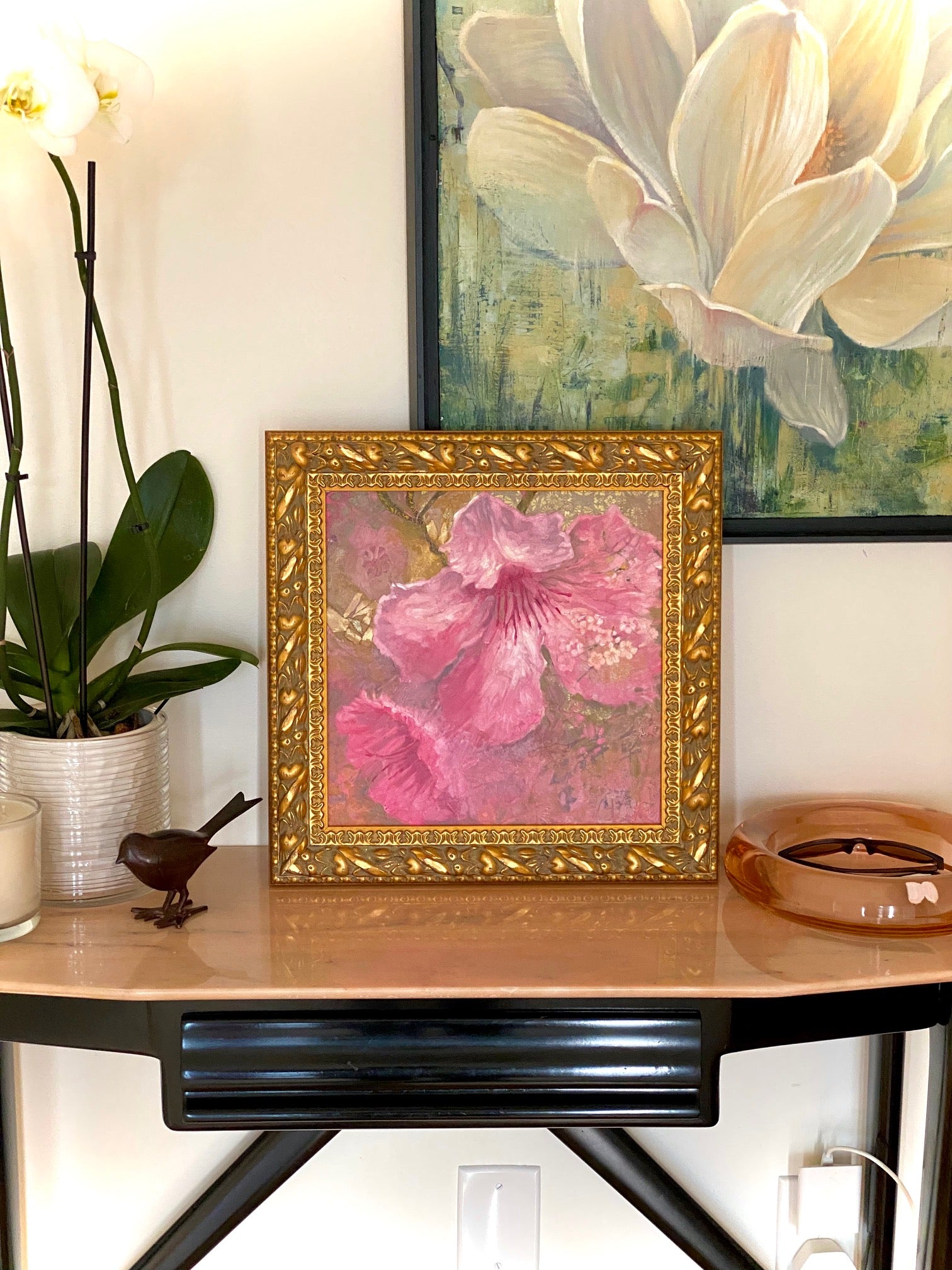 I create what I do because color and lines that I see won’t stay in my head. The smallest leaf or flower will catch my eye and draw me into its own intimate moment of shadow and light. The bigness of the outdoors calls to me, echoing my own cavernous desire to stir someone else by sharing my interpretation of this smallest (or biggest) expression of life.Nothing is as satisfying as charcoal on my fingers, paint on my jeans or flecks on my glasses; I attack the surface with emotive strokes, smudges and smears of contrast and harmony. I love the feel of creativity.